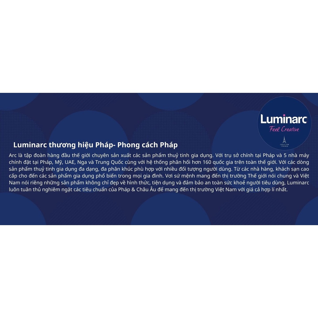 - Kích thước: 18cm. - Chất liệu: Thuỷ tinh opal, cường lực, kháng vỡ. - Xuất xứ: Pháp. - Đặc tính nổi bật: cường lực, kháng vỡ nhiều lần so với thuỷ tinh thông thường.
