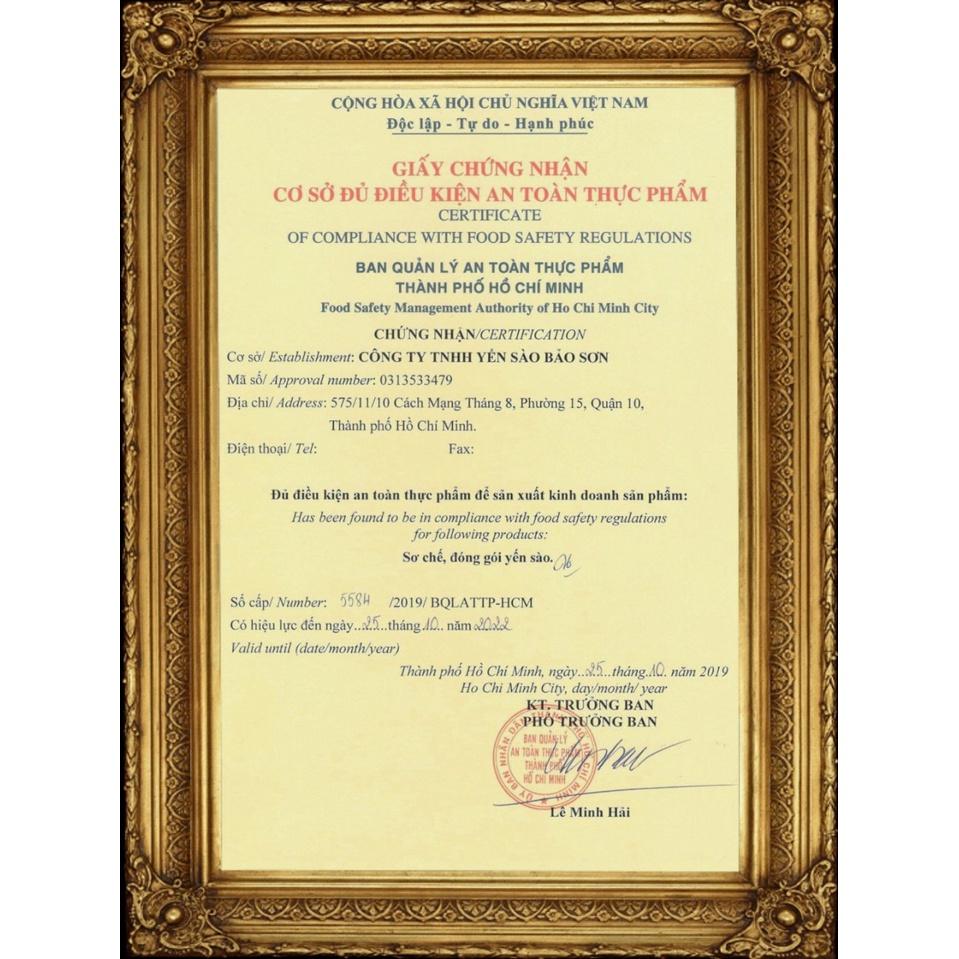 - Chịu trách nhiệm về sản phẩm: CÔNG TY TNHH YẾN SÀO BẢO SƠN.