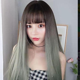 ✨Tóc giả thẳng️ ombre đen xanh xám cao cấp- tặng lưới chùm tóc