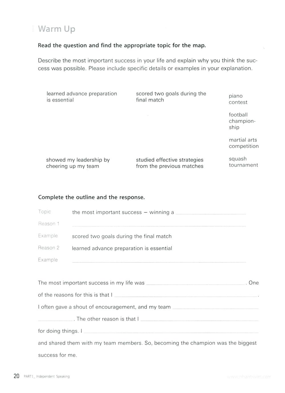 Building Skills For The Toeft IBT Beginning - Speaking Trong cuốn sách Building Skills For The Toeft IBT Beginning - Speaking: người học có thể tiếp xúc với các dạng câu hỏi sáng tạo tìm