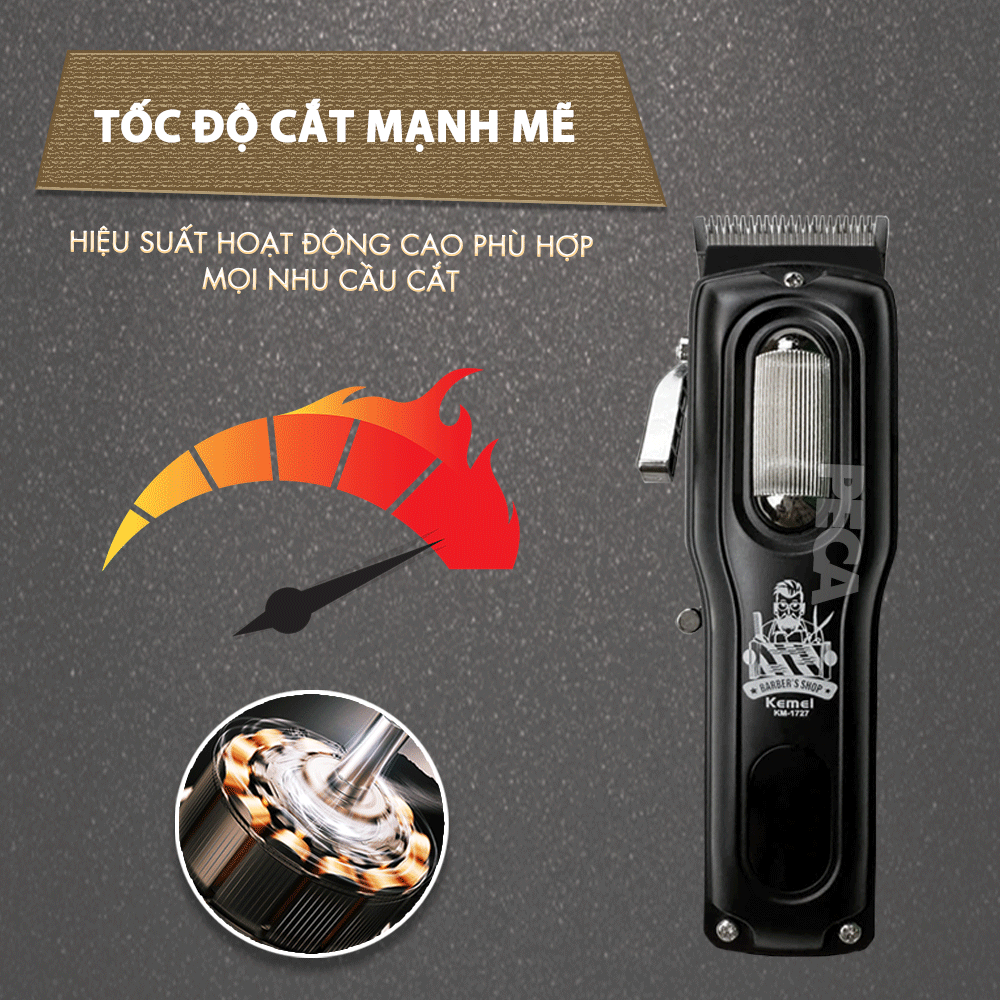 Mua tại TiktokTÔNG ĐƠ CẮT TÓC CHUYÊN NGHIỆP KEMEI KM-1727 CÔNG SUẤT SIÊU MẠNH 8W Máy cắt tóc Kemei KM-1727 là một trong những sản phẩm nổi bật của thương hiệu Kemei, được thiết kế dành cho cả người dùng cá nhân và thợ cắt tóc chuyên nghiệp. Với công nghệ tiên tiến, thiết kế hiện đại và nhiều tính năng ưa dụng, Kemei KM-1727 đang dần khẳng định vị thế của mình trên thị trường. ƯU ĐIỂM NỔI BẬT : 1/ Ngoại quan sản phẩm: