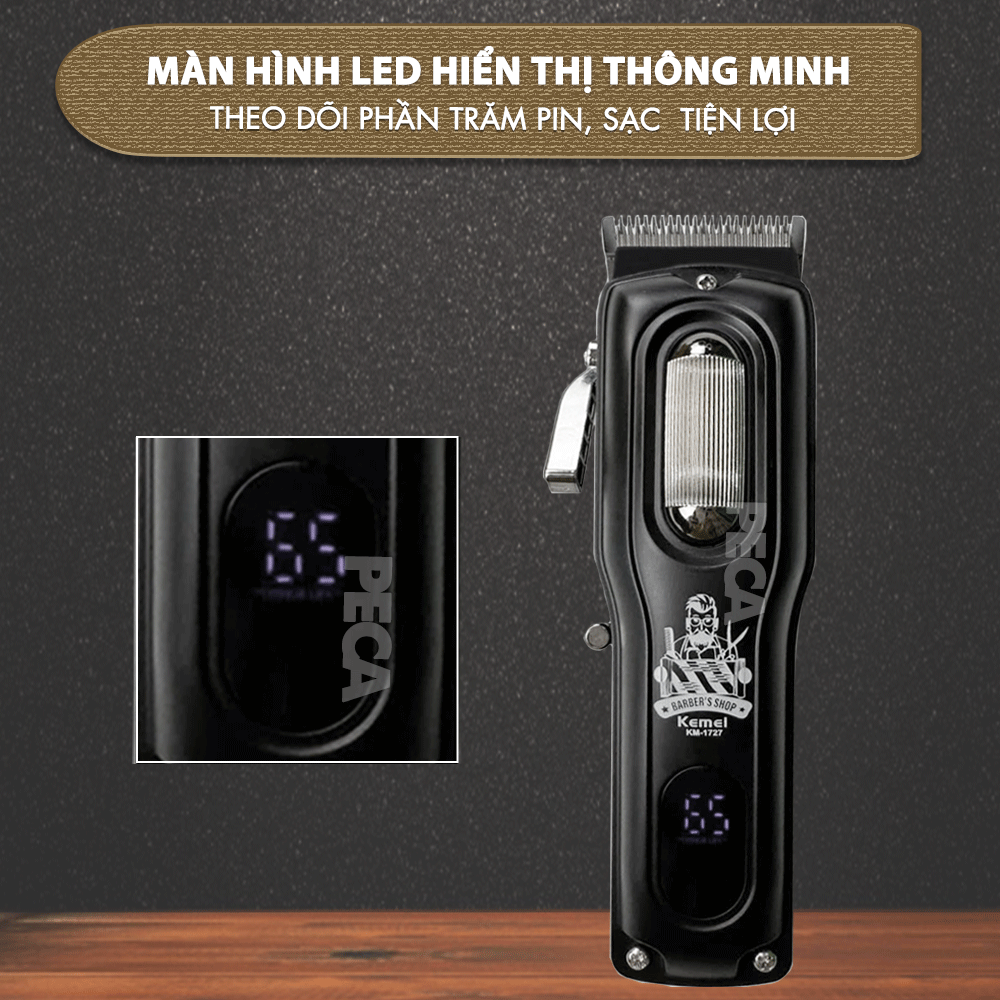 ✨Tông đơ cắt tóc chuyên nghiệp Kemei KM-1727 công suất mạnh 8W màn hình LCD sạc nhanh USB tiện lợi - Chính hãng