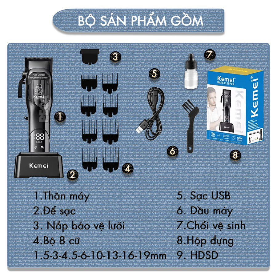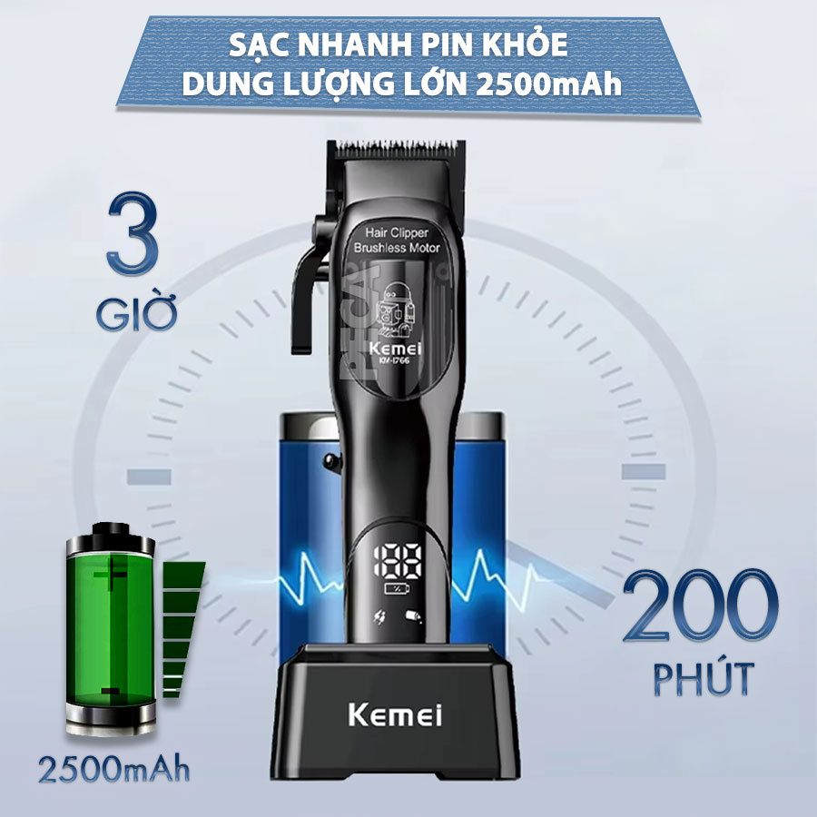 TÔNG ĐƠ CẮT TÓC CHUYÊN NGHIỆP KEMEI KM-1766 CÔNG SUẤT MẠNH 5W ĐỘNG CƠ KHÔNG CHỔI THAN, MÀN HÌNH LCD HIỂN THỊ SẠC, LƯỠI CẮT MẠ CARBON DLC CAO CẤP