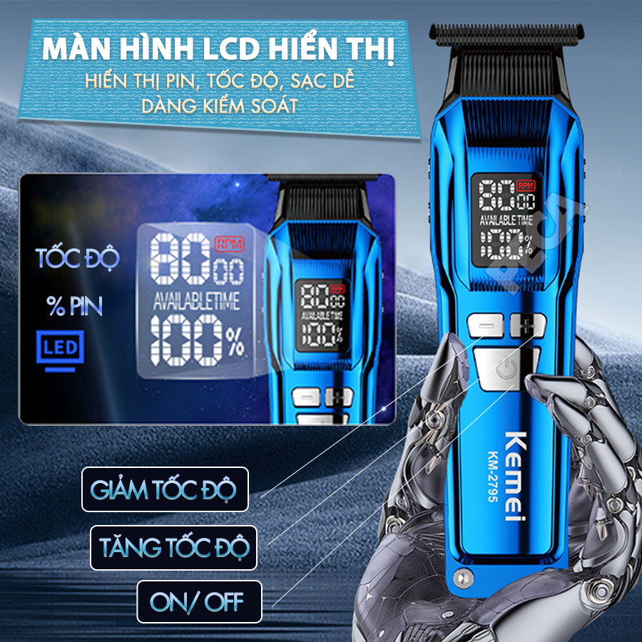 TÔNG ĐƠ CHẤN VIỀN PHIÊN BẢN CAO CẤP KEMEI KM-2795 LƯỠI MẠ CARBON DLC CAO CẤP, CÔNG SUẤT MẠNH MẼ 8W - CHÍNH HÃNG Máy cạo râu Kemei KM-2795 là sản phẩm chuyên nghiệp, tích hợp nhiều tính