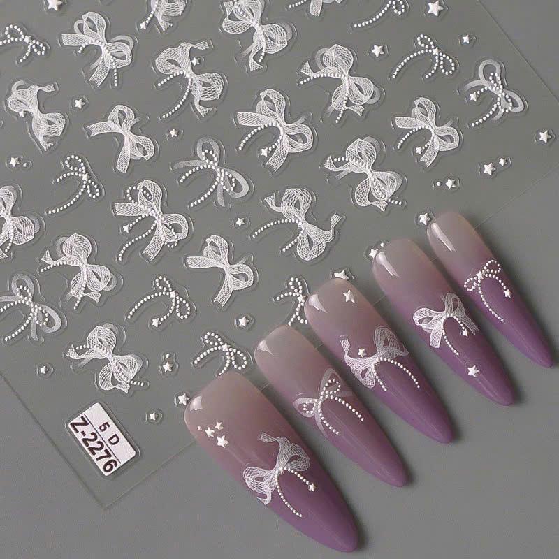 Sticker 5D Nơ Ren Lụa Nổi Z2276 Siêu Hot, Hình Dán Móng Nơ Trắng Làm Nail Trẻ Trung Nữ Women Giới Thiệu Sản Phẩm: Nếu bạn đang tìm kiếm một phụ kiện trang trí móng