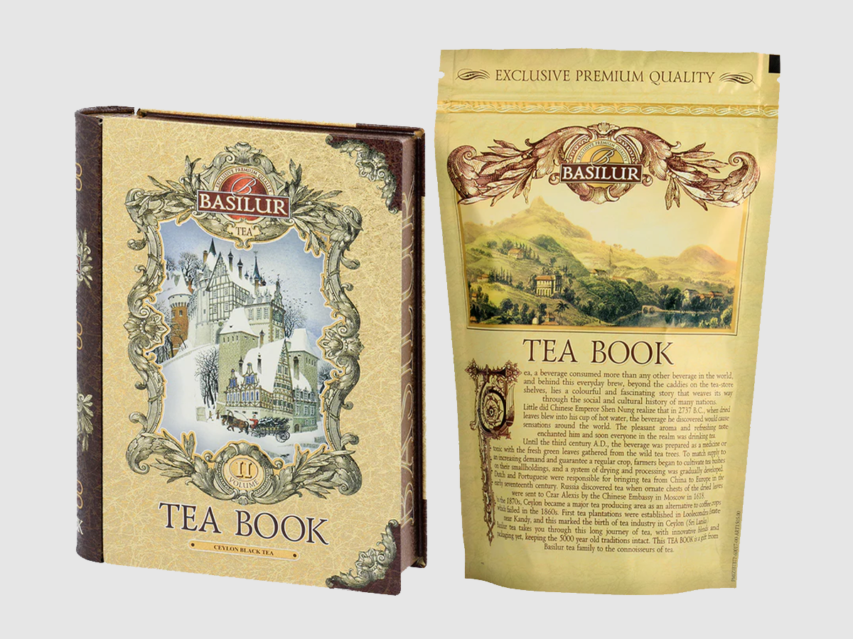 Basilur là một đại diện điển hình của nghệ thuật uống trà. Mỗi bộ sưu tập của Basilur mô tả một câu chuyện riêng liên quan đến di sản Sri Lanka phong phú. Mỗi sản phẩm là một trải nghiệm uống trà độc đáo đưa những người uống trà sành điệu đến những thời gian và địa điểm khác nhau. Trà Basilur sẽ đưa bạn đi qua cuộc hành trình dài của trà, với cách pha chế và đóng gói sáng tạo nhưng vẫn giữ nguyên vẹn truyền thống 5000 năm tuổi. Basilur Tea Book Collection là một món quà của gia đình trà Basilur dành cho những người sành trà.