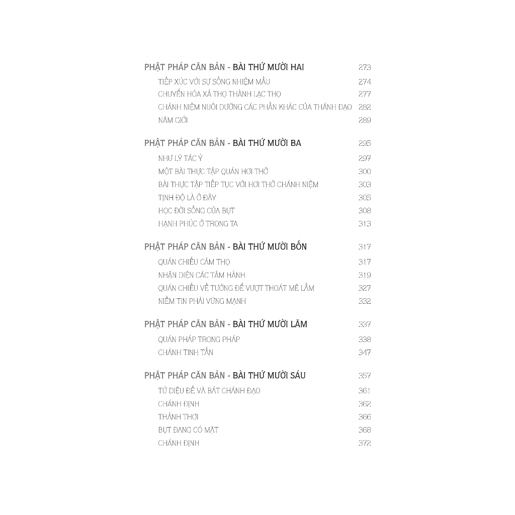 Phần trọng tâm nhất của cuốn sách bàn về gốc rễ của đạo Phật xoay quanh Nhị Đế – Tứ Diệu Đế – Bát chánh đạo – Duyên khởi. Thế nào là khổ, tập, diệt, đạo và ta áp dụng và nhân ra các giáo lý đó trong cuộc sống hiện tại. Chánh kiến, chánh niệm, chánh ngữ, chánh tinh tấ là gì? Chúng liên quan gì đến nhau và ảnh hưởng thế nào trong cuộc sống của chính mình.