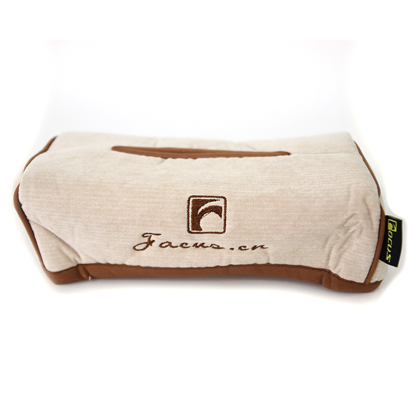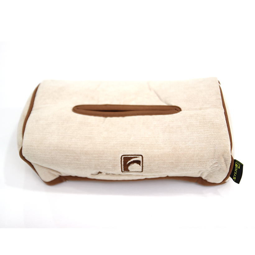 Trang trí bọc hộp khăn giấy FOCUS F-X09A màu kem với đường may, họa tiết tinh tế, làm tăng thêm vẻ sang trọng cho không gian nội thất trong xe