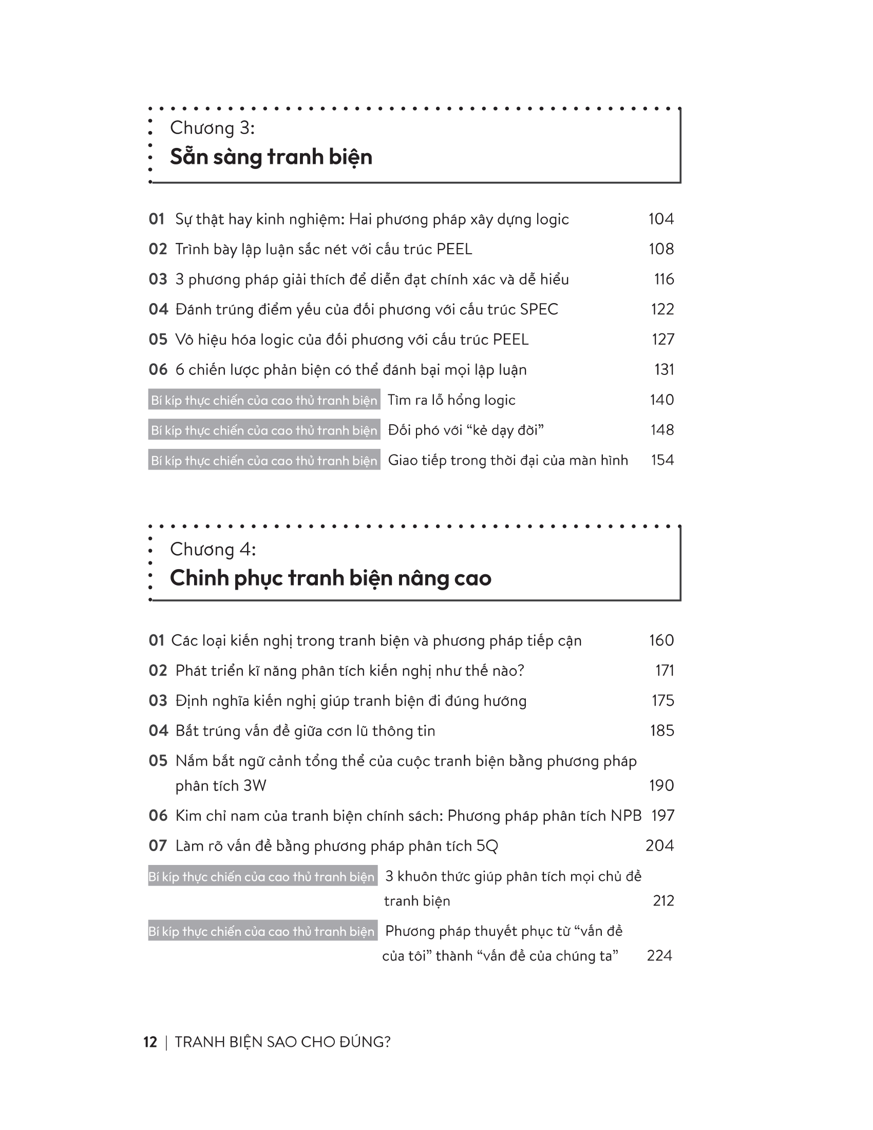Chương 3 tập trung vào các kĩ năng cơ bản trong tranh biện và các kĩ thuật có liên quan.