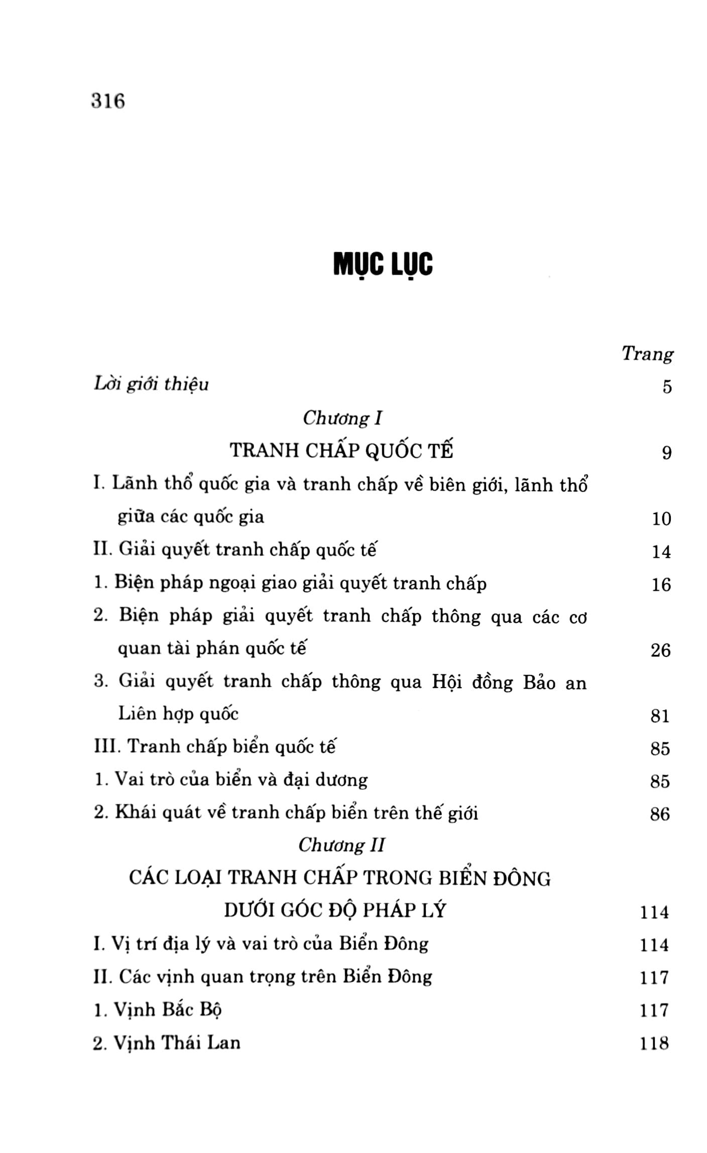 Cuốn sách Tranh chấp Biển Đông: Pháp lý và thực tiễn do TS. Trần Công Trục, nguyên Trưởng ban Biên giới Chính phủ làm chủ biên gồm 4 chương, chương 1, Tranh chấp quốc tế đề cập vấn đề tranh chấp quốc tế xảy ra bởi những mối quan hệ cũng như các lợi ích phức tạp, đan xen trên nhiều lĩnh vực giữa các quốc gia và các chủ thể khác của luật quốc tế. Trong các tranh chấp quốc tế, tranh chấp lãnh thổ là một trong những tranh chấp dai dẳng, khó giải quyết, tiềm ẩn nguy cơ dẫn đến chiến tranh nhất. Theo tác giả, việc giải quyết tranh chấp có ý nghĩa quan trọng vì nó liên quan đến duy trì hòa bình, an ninh thế giới, chấm dứt xung đột, bất đồng giữa các bên liên quan; góp phần thúc đẩy các quốc gia tuân thủ và thực hiện luật quốc tế triệt để hơn; đồng thời tác giả cũng làm rõ vai trò của biển và đại dương; chỉ ra các tranh chấp biển trên thế giới như tranh chấp về quyền thụ đắc lãnh thổ đối với các thực thể địa lý trên biển và tranh chấp về việc giải thích và áp dụng các quy định của Luật Biển quốc tế UNCLOS 1982. Chương 2, Các loại tranh chấp trong Biển Đông dưới góc độ pháp lý và chương 3, Các bất đồng, tranh chấp trong Biển Đông, tác giả đã cho bạn đọc thấy tranh chấp trong Biển Đông hiện vẫn đang là một “nguy cơ” gây bất ổn trong khu vực. Tranh chấp Biển Đông đã trở thành một trong những cuộc tranh chấp phức tạp bậc nhất trên thế giới. Sự phức tạp của tranh chấp Biển Đông đến từ các yêu sách phức tạp về c.hủ quyền của nhiều quốc gia đối với các khu vực chồng lấn, hơn thế nữa, nó không chỉ đơn thuần là tranh chấp về mặt luật pháp quốc tế về biên giới biển, lãnh thổ trên biển mà còn được đan xen với những lợi ích về địa – chính trị, về kiểm soát con đường vận tải biển chiến lược, và về khai thác các nguồn tài nguyên biển, đặc biệt là dầu mỏ. Thực tế cho thấy tranh chấp các đảo trong Biển Đông đã trở thành một trong những vấn đề an ninh quan trọng nhất trong khu vực bởi yêu sách “đường lưỡi bò” của Trung Quốc sẽ có tác động rất lớn đến việc phân định các đường biên giới biển của khu vực này trong tương lai, và cũng ảnh hưởng nghiêm trọng đến c.hủ quyền, toàn vẹn lãnh thổ cũng như quyền lợi trên biển của nhiều nước trong khu vực, trong đó có Việt Nam. Chương 4, Nhận diện những thông tin, nhận thức và luận điểm sai trái đang tồn tại, tác giả nêu một số lưu ý về kiến thức pháp lý mà hiện nay vẫn đang tồn tại những nhận thức khác nhau như: vấn đề xác lập các vùng biển và thềm lục địa thuộc c.hủ quyền, quyền c.hủ quyền và quyền tài phán theo UNCLOS 1982 và Luật Biển Việt Nam 2012; vấn đề c.hủ quyền đối với hai quần đảo Hoàng Sa và Trường Sa. Ngoài ra, tác giả cũng chỉ rõ tên gọi vùng biển, hải đảo; đưa ra cách hiểu về nguyên tắc “giữ nguyên hiện trạng” ở Biển Đông, cũng như cách hiểu về phạm vi quần đảo Hoàng Sa và quần đảo Trường Sa với các thực thể địa lý nằm trong vùng đặc quyền kinh tế và thềm lục địa của các nước chung quanh Biển Đông. Tác giả cũng chỉ ra rằng UNCLOS 1982 không phải là “cây đũa thần” có thể giải quyết hết mọi tranh chấp trên biển như một số người vẫn còn nhầm lẫn.