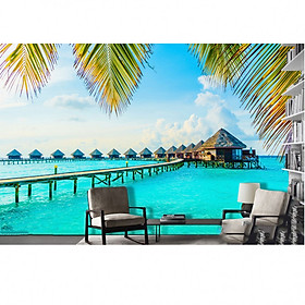 Tranh Dán Tường 3D Cảnh Biển Thi Công Thực Tế Tại Nhà Khách Hàng | Liên Hệ : 0383.140.582"