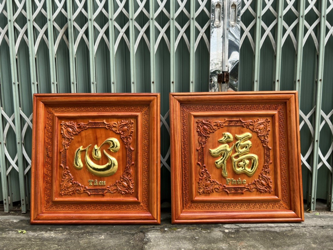 ✨Tranh điêu khắc chữ phúc và được sơn son dát vàng cao cấp bằng gỗ hương đỏ kt 67×67×3,5cm