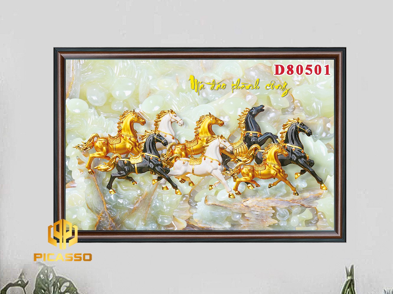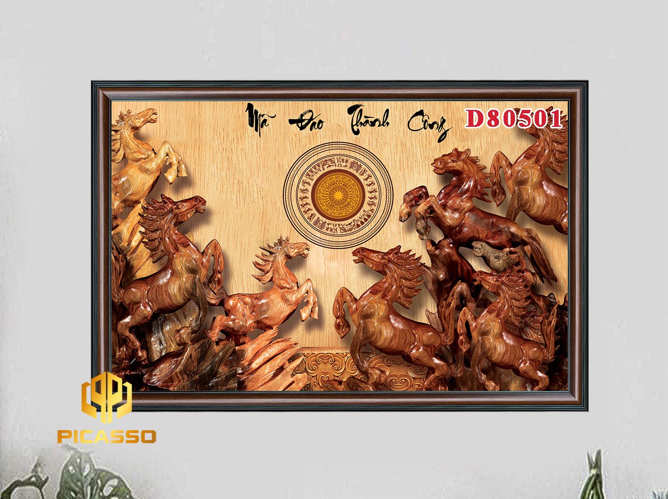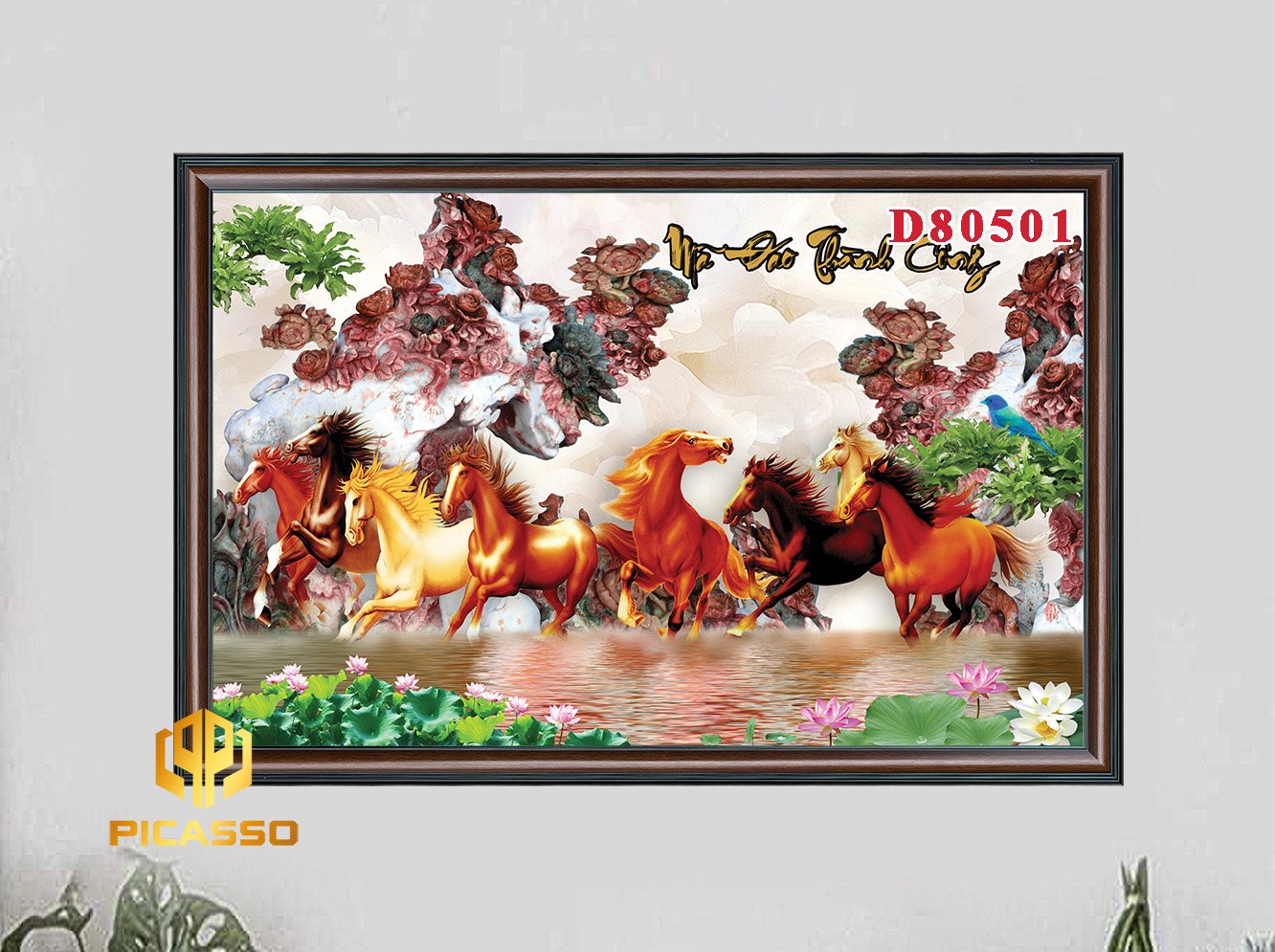 Khung Tranh : Khung tranh được làm từ chất liệu nhựa PVC giả gỗ, họa tiết nổi,màu sắc chân thực, Bản khung tranh 6cm