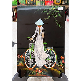 Tranh sơn mài cẩn vỏ trứng- cẩn chìm tặng khách nước ngoài là món quà tuyệt vời nhất, tà áo dài làm du khách liên tưởng đến những cô gái Việt Nam trong tà áo dài thướt tha, mềm mại như sự dịu dàng vốn có của con người hiền hòa nơi đây.