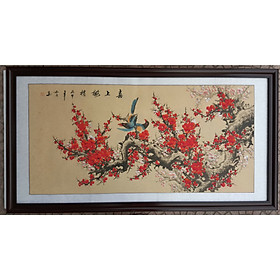 Tranh thêu hoa đào đôi uyên ương - tranh thêu tặng đám cưới ý nghĩa