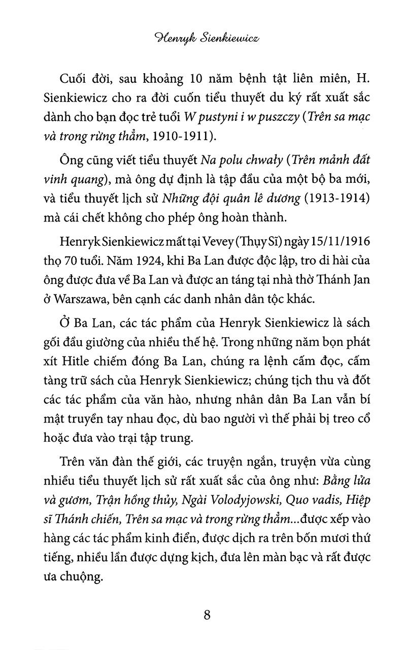 Là tác phẩm duy nhất viết cho thiếu nhi của nhà văn Ba Lan nổi tiếng Henryk Sienkiewicz (1846-1916) - người đoạt Nobel văn học năm 1905, ngay từ khi ra đời, Trên sa mạc và trong rừng thẳm đã được hoan nghênh nhiệt liệt, được tái bản liên tiếp và được dịch ra nhiều thứ tiếng. Và trong suốt một thế kỷ qua, tác phẩm luôn được xem là một trong những cuốn truyện hay nhất dành cho thiếu nhi. Tác phẩm gợi lên cho con người khát vọng sống đẹp, khát vọng đi tới những miền xa, thực hiện những kỳ tích phi thường, vượt mọi hiểm nguy, chiến thắng mọi bất công tàn ác.