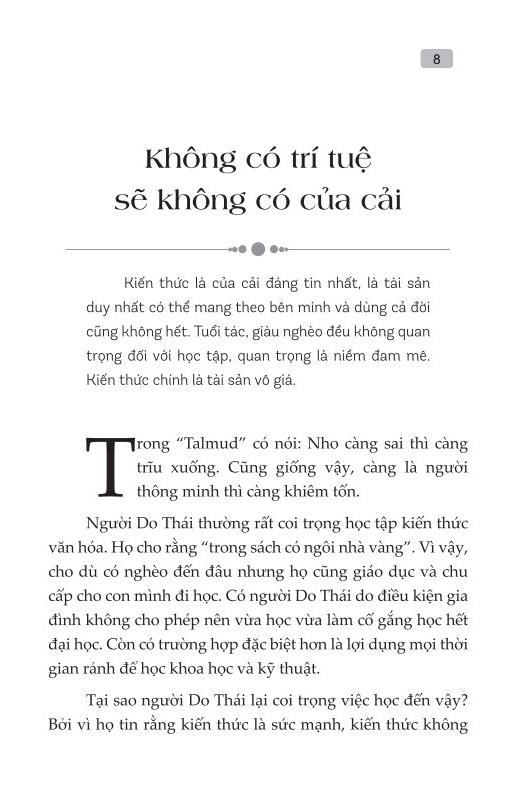 Trí tuệ làm giàu là cuốn sách trình bày các khía cạnh của sự khôn ngoan mà dân tộc Do Thái sở hữu. Hãy cùng suy ngẫm về sự giàu có và trí thông minh của họ. Cuốn sách có thể được coi là tóm lược về các công cụ tích lũy tài sản và các công cụ tư duy được những người Do Thái nổi tiếng toàn cầu như gia tộc Rothschild, Rockefeller, Buffett, Bill Gates và Soros sử dụng hàng bao năm qua.