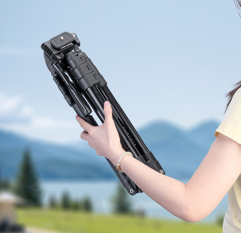 1, Tripod VCT 5208RM dòng chân đế du lịch của Yunteng. Với thiết kế và chất liệu chắc chắn và tiện lợi. Thiết kế chiều cao tối đa 1m25 và thu gọn 43cm, thích hợp