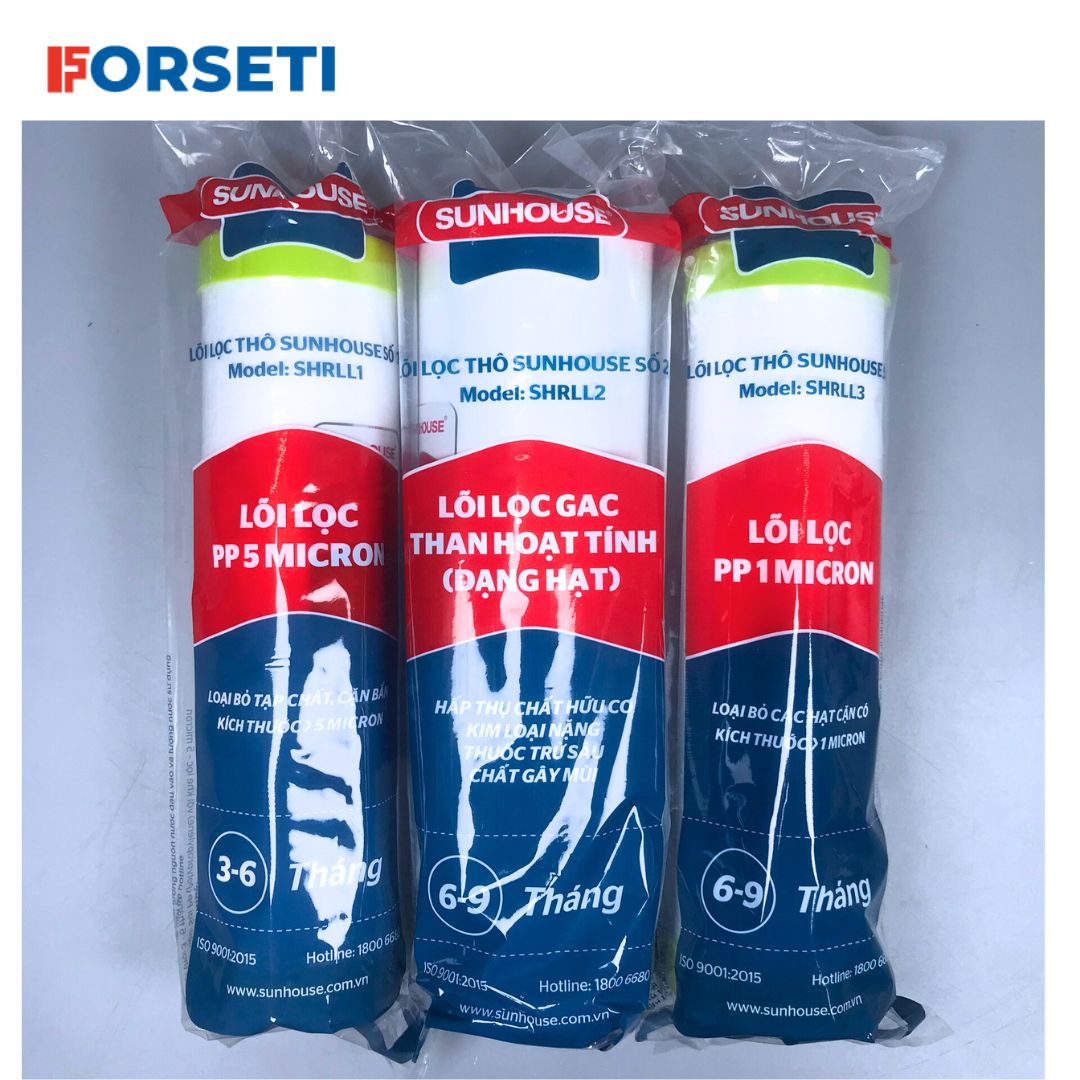 Bộ Combo bao gồm: 1. 3 LÕI SEDIMENT: - Chức năng của lõi Sediment: Loại bỏ các chấy cặn, bẩn, tỉ sét, bọ gậy, rong rêu... kích thước lớn hơn 1micron - Thời gian thay