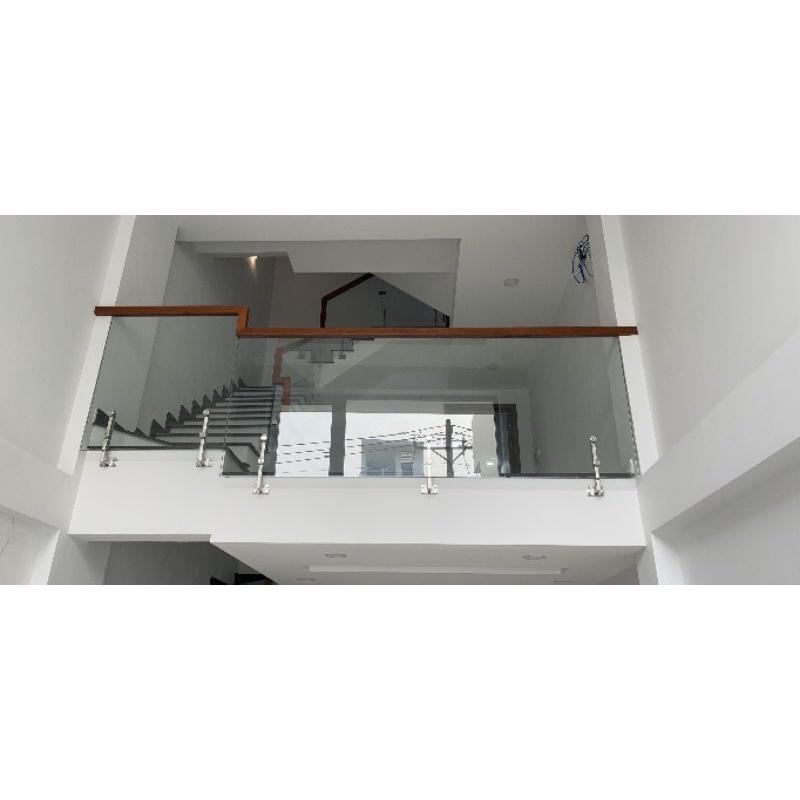 cầu thang tay vịn gỗ căm xe - trụ inox 304 kính 10 lí cường lực lh 0972927873 để được tư vấn ạ