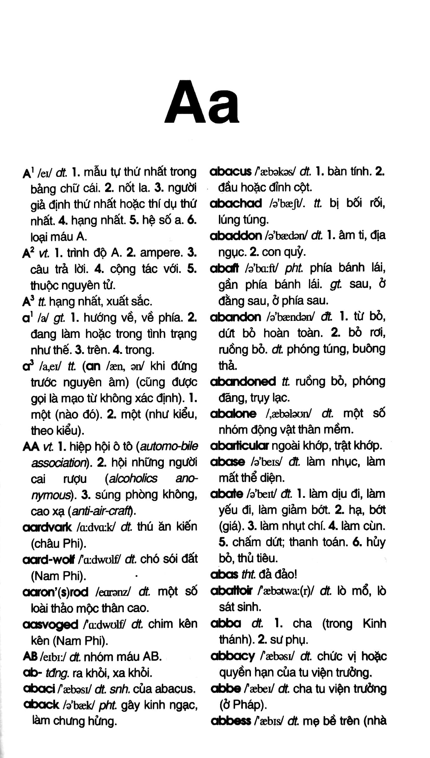 Nhằm đáp ứng nhu cầu học tiếng anh đa dạng của độc giả , chúng tôi đã biên soạn bộ từ điển Anh - Việt để phục vụ cho người học tiếng anh thuộc mọi