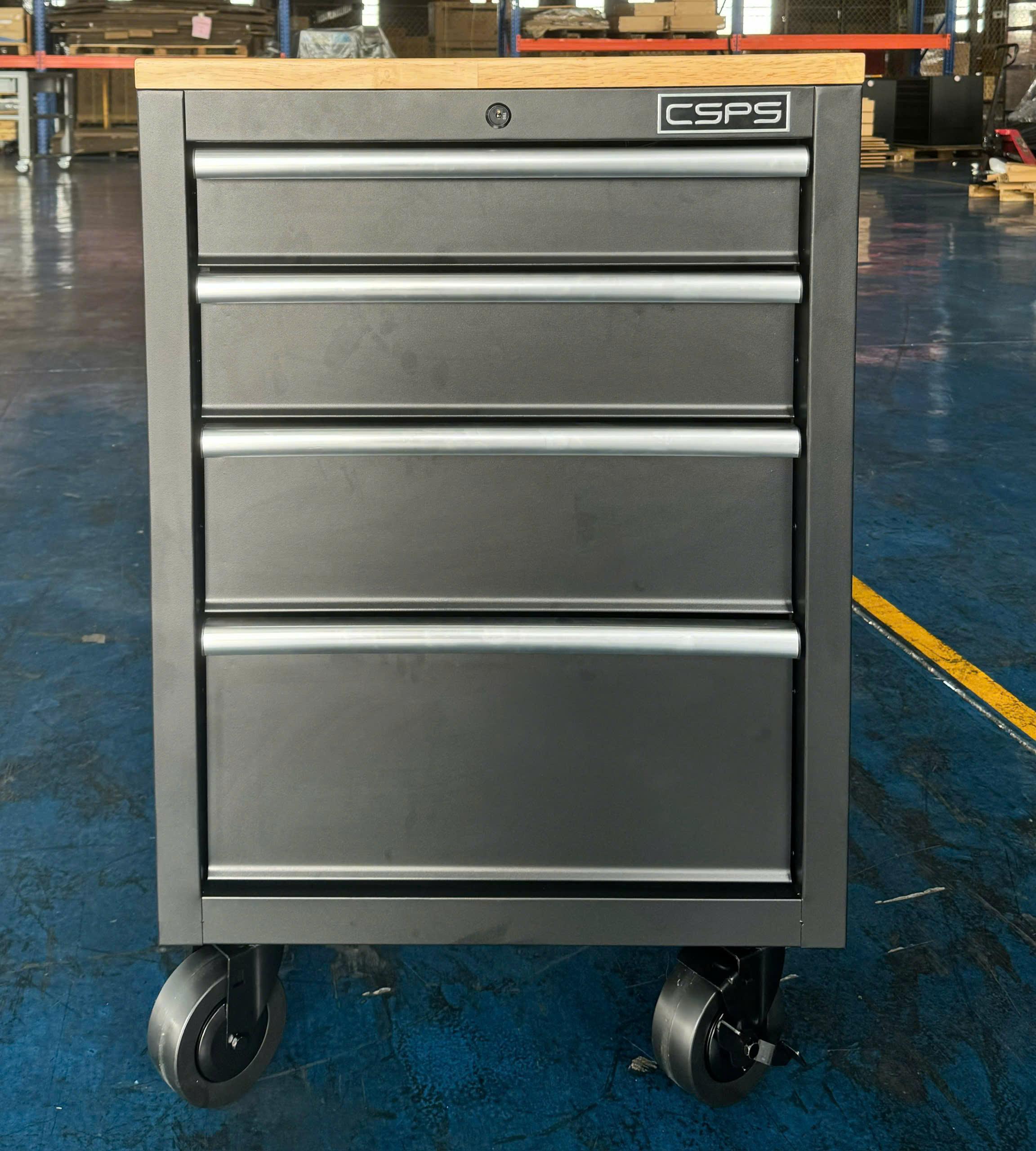 ✨Tủ dụng cụ CSPS 61cm - 04 hộc kéo màu đen bánh xe ván gỗ (tay cầm trắng)