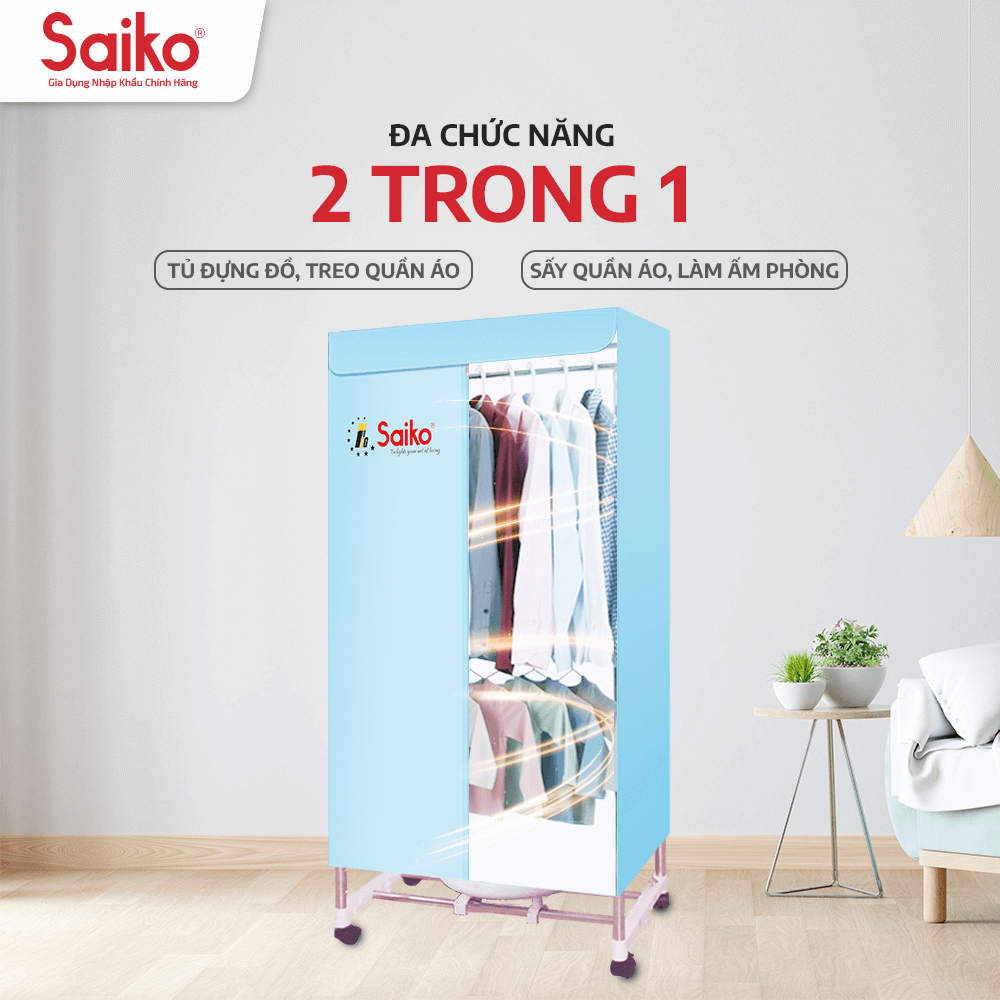 ✨Tủ Sấy Quần Áo Đa Năng Thanh Khung Inox To Dày Saiko CD-1800 (1800W) - Màu Ngẫu Nhiên - Hàng Chính Hãng