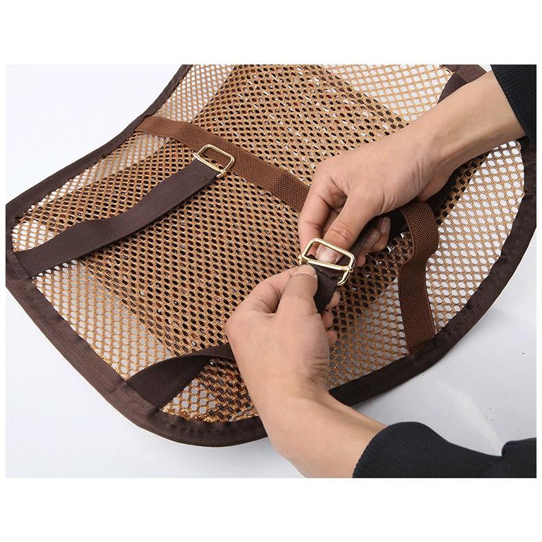 Tựa lưng lưới đan hạt gỗ cho ghế ô tô và văn phòng chống mỏi lưng có chốt cố định