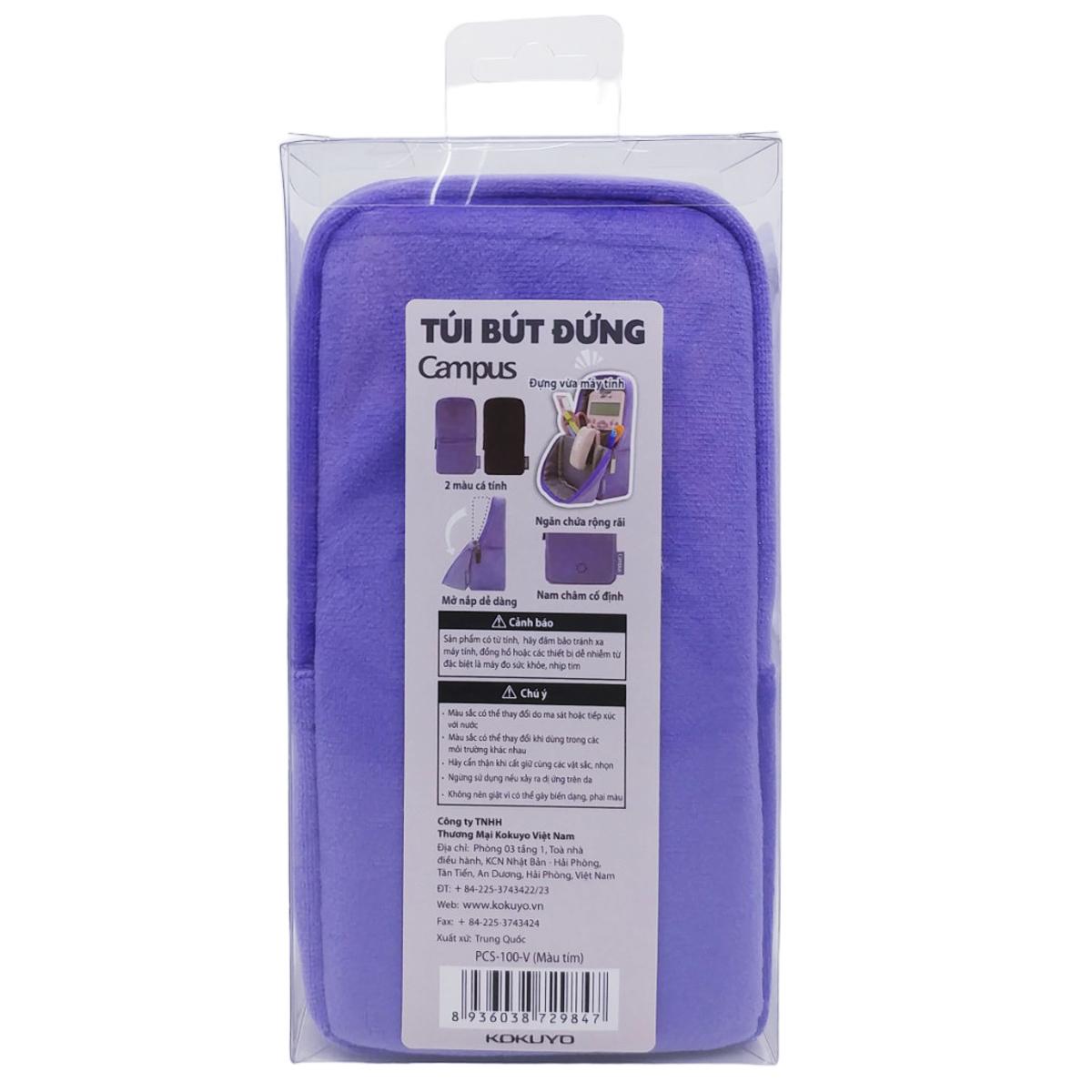 Túi Bút Đứng Vải Nhung - Campus PCS-100-V - Màu Tím - Kiểu dáng: Túi bút có thể dựng đứng, dễ lấy đồ & tiết kiệm không gian trên mặt bàn - Chất liệu: làm