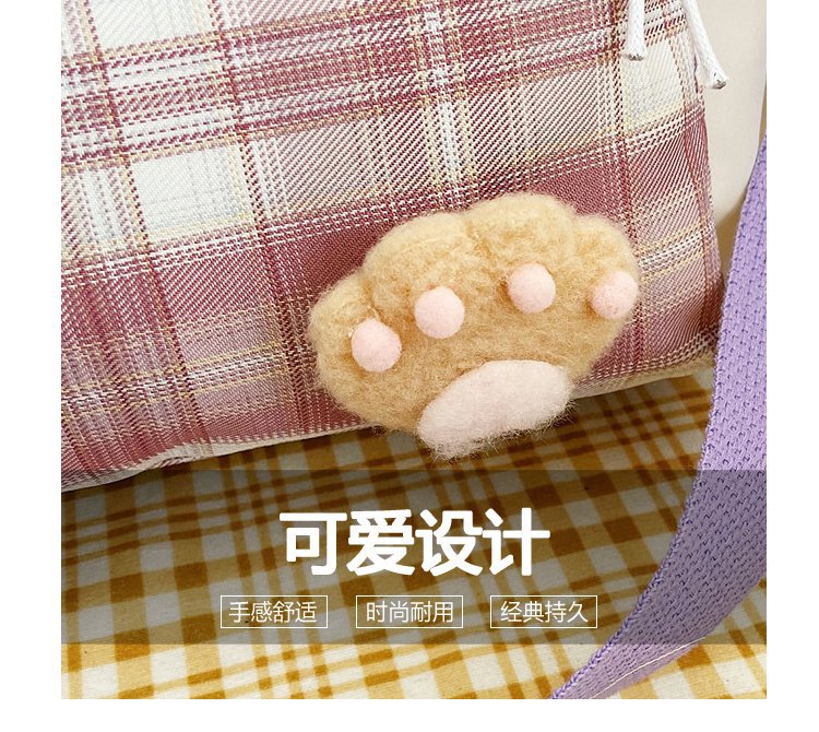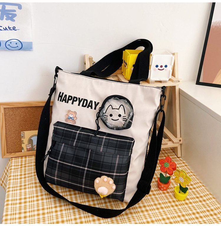 Tên sản phẩm: Túi đeo chéo BH Kids, họa tiết Caro HAPPY DAY, vải Canvas, in hình mèo con xinh xắn - CH127