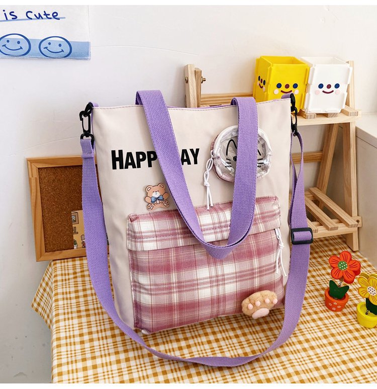 • Túi đeo chéo họa tiết Caro HAPPY DAY mang thương hiệu BH Kids với thiết kế 2 ngăn tinh tế