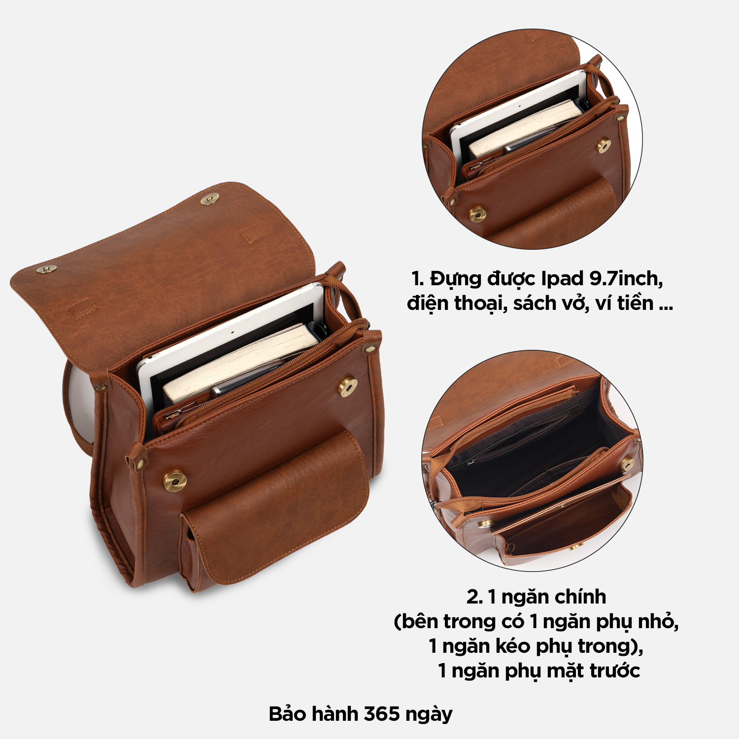 Túi đeo chéo Retro mang đậm thiết cổ điển độc đáo Thiết kế mang đậm phong cách cổ điển với thân túi hình hộp chữ nhật mềm mại nhưng khỏe khoắn. 3 phiên bản màu