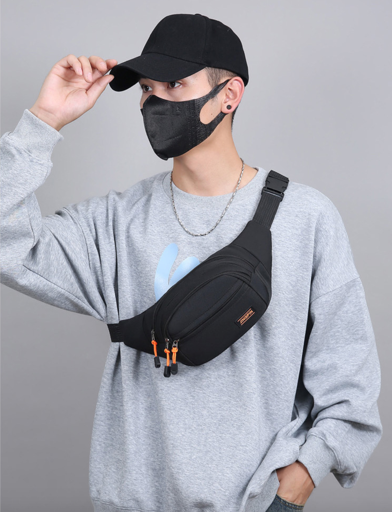 Túi Bao Tử Đeo Ngực Nhỏ Mini Trơn Màu Đen Giản Dị Dành Cho Nam Nữ Chất Liệu Nylon Chống Nước