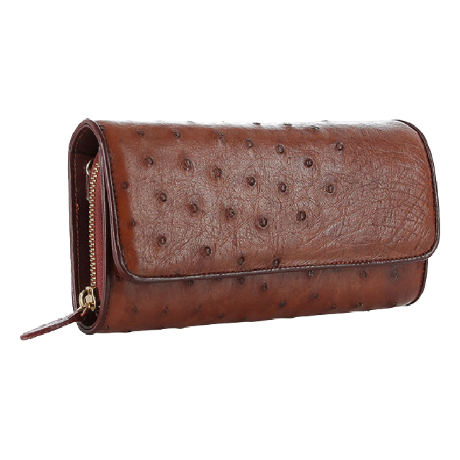 Bóp/Ví da đà điểu Huy Hoàng da bụng kiểu đứng màu nâu đất, nâu đỏ, đen, vàng bò 2408-09-10-18