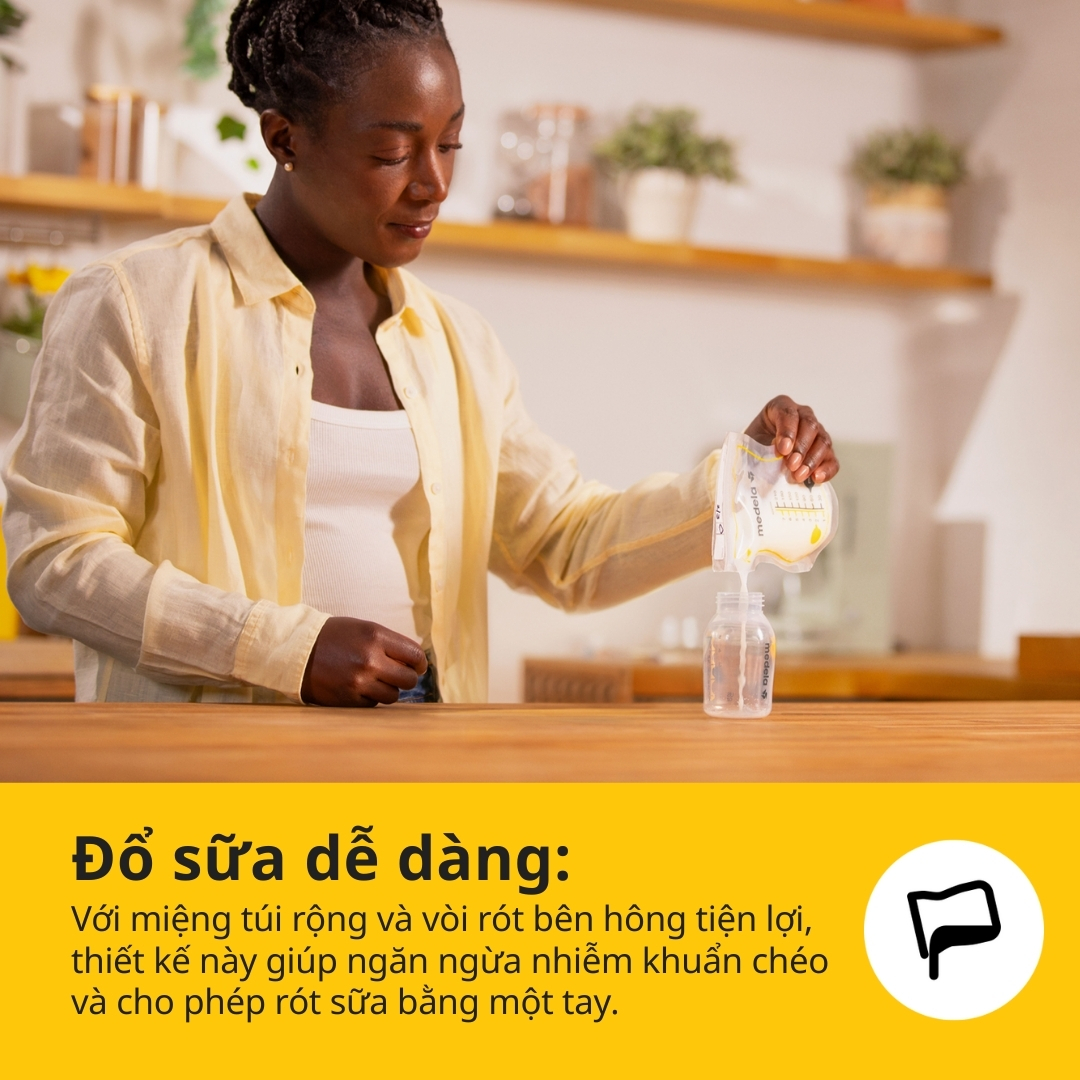 Mua tại Tiktok【TÚI TRỮ SỮA MEDELA EASY POUR】 Dùng túi trữ sữa Easy Pour để bảo quản sữa mẹ vừa vắt trong tủ lạnh hoặc tủ đông. Thiết kế miệng túi độc quyền giúp rót sữa dễ dàng, hạn chế tràn đổ hay nhiễm khuẩn chéo. 【Đặc điểm nổi bật】 Rót sữa bằng một tay thật dễ dàng – 85% mẹ đồng ý: Thiết kế miệng túi độc quyền giúp hạn chế tràn sữa và tránh lây nhiễm chéo. Bảo vệ dưỡng chất trong sữa mẹ với chất liệu dày dặn đặc biệt. Hoàn toàn không rò rỉ – 98% mẹ đồng ý Tiết kiệm không gian bảo quản: Thiết kế có thể đặt nằm phẳng hoặc đứng vững trong tủ lạnh/tủ đông – 76% mẹ đồng ý Thân thiện môi trường: Có thể tái chế, làm từ một loại vật liệu duy nhất, không cần rửa trước khi bỏ. Sẵn sàng sử dụng: Đã được tiệt trùng và đóng gói trong túi vận chuyển. Dễ dàng sắp xếp: Có vạch chia thể tích rõ ràng và chỗ ghi ngày giờ lượng sữa. Không chứa BPA – an toàn cho mẹ và bé. Khảo sát người tiêu dùng được thực hiện bởi đơn vị độc lập vào tháng 11 năm 2023 【Phân loại đóng gói】 Có thể lựa chọn giữa 2 phân loại: 25pcs/ hộp hoặc 50pcs/ hộp 【Dung tích】 Dung tích của túi trữ sữa Medela Easy Pour là 210ml (7oz) Xuất xứ : Trung Quốc Thương hiệu Medela Bao bì sản phẩm có thể thay đổi tùy từng lần nhập hàng.