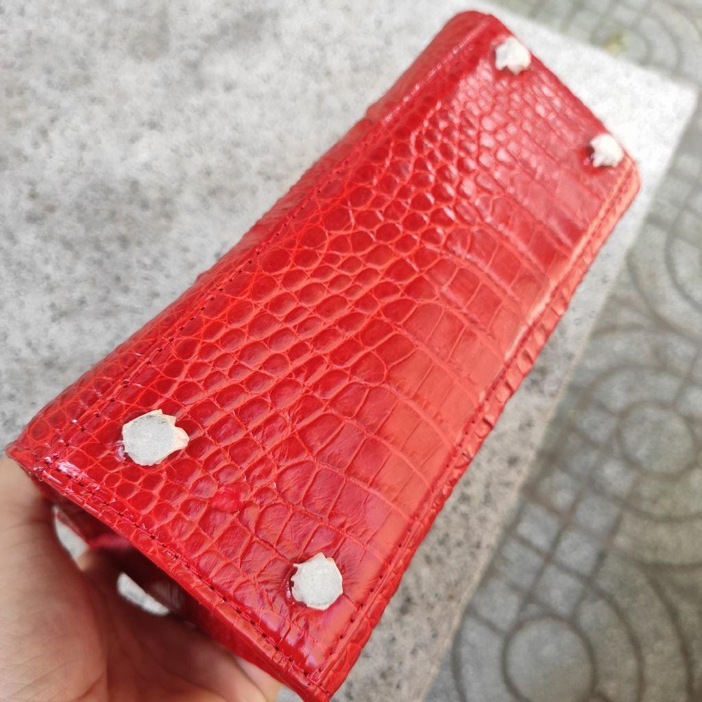 Chất liệu: mặt ngoài da cá sấu nguyên tấm gai lưng. Mặt trong lót da bò cao cấp