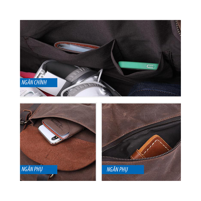 Kích thước : rộng 48cm X cao 27cm X dày 22cm Trọng lượng: 0.5 kg Màu sắc: Đen, Nâu, Kaki Phương pháp sản xuất: công nghệ cao Chất liệu : Vải Oxford chống nước Chức