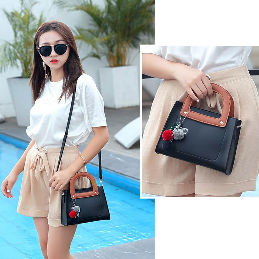 Túi xách thời trang vuông giản dị, gắn chùm phụ kiện dễ thương, chất liệu da cao cấp, có dây đeo chéo tiện dụng - Hạnh Dương