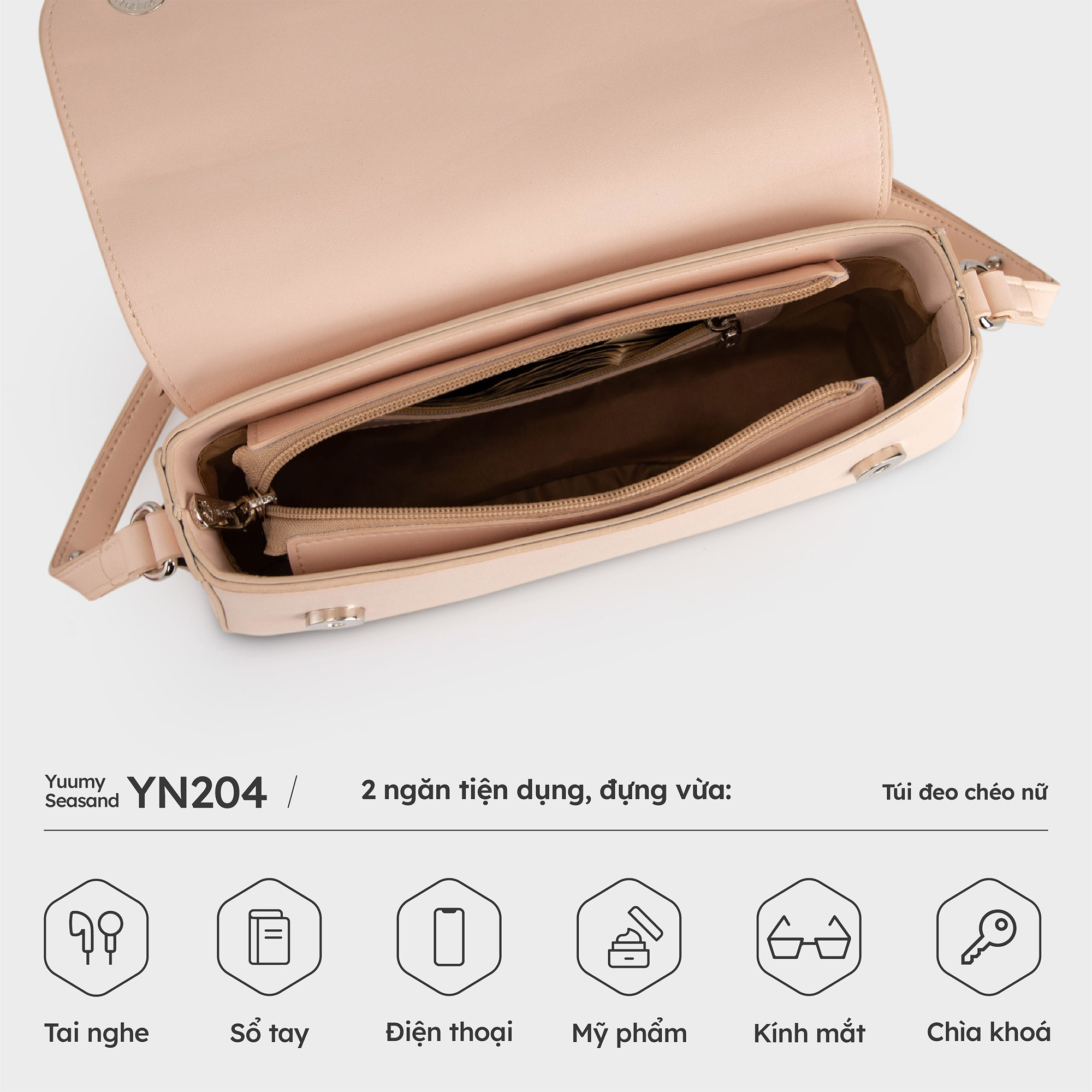 Một mẫu túi lý tưởng dành cho quý cô hiện đại yêu thích phong cách thanh lịch nhưng không kém phần thời thượng. Túi đeo chéo nữ Yuumy Seasand YN302 thiết kế phom hộp vuông