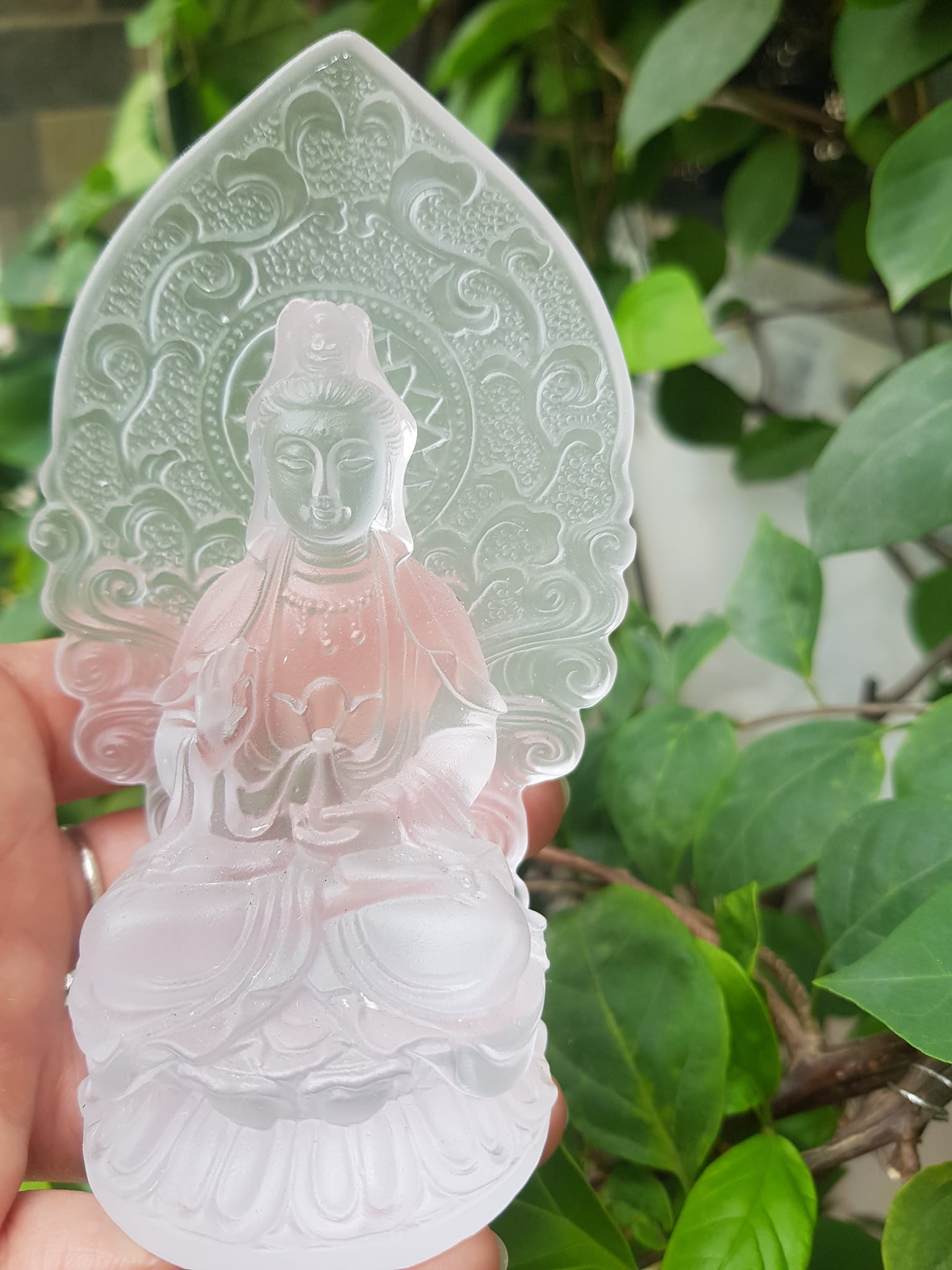 💐💐☘️TƯỢNG PHẬT BÀ QUAN ÂM MỚI ĐÁ LƯU LY TRẮNG TINH ĐỂ TRONG XE HƠI hoặc BÀN cao 12cm x 7cm x đế 5cm