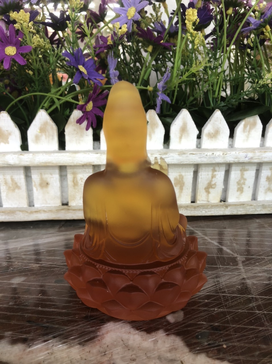 Tượng Để Xe Địa Tạng Bồ Tát Bằng Lưu Ly Mầu Vàng, Cao 12cm