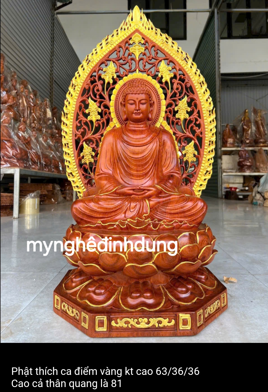 Mua tại TiktokTượng phật thích ca mẫu ni được làm bằng chất liệu gỗ hương đá tự nhiên 100% Kt cao 63×36×36cm + lá chắn hào quang cao tổng 81cm _ Tượng được chạm khắc vô cùng tỉ mỉ tinh xảo kỳ công.Đi hầu hết tất cả mọi chi tiết góc ngách nội dung hoa văn của tượng đều được gọt tỉa chỉnh sửa sắc nét hoàn toàn bằng tay thủ công truyền thống.