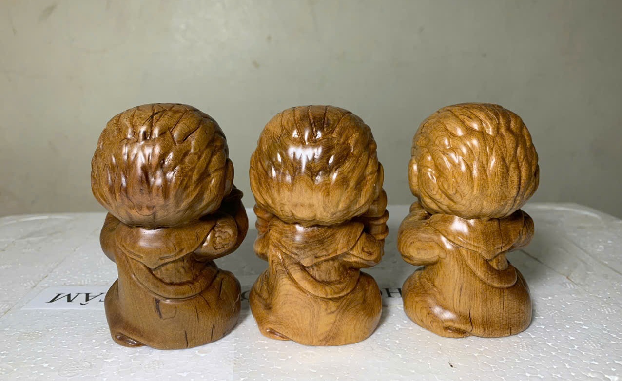 Mua tại TiktokBộ tượng tam không khỉ được làm bằng chất liệu gỗ bách xanh liền khối tự nhiên 100% Kt cao 10x7x6cm