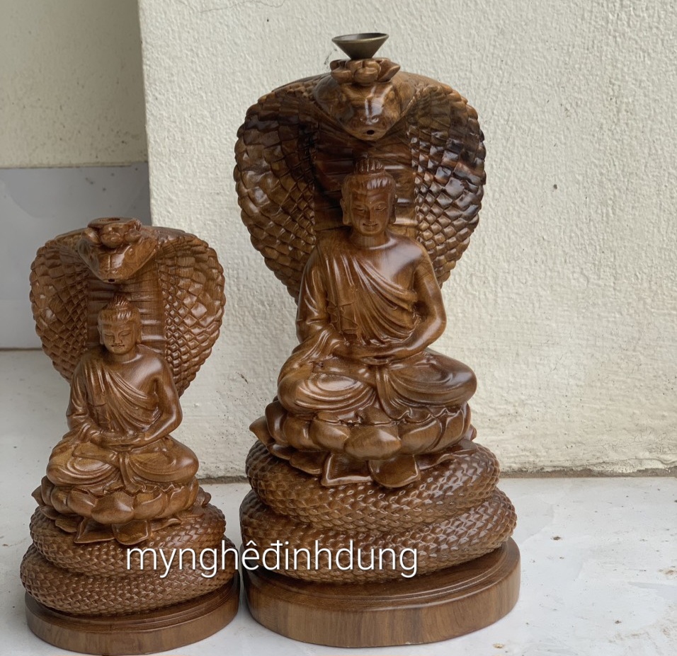 Mua tại Tiktok_ Tượng thần rắn bảo vệ Đức Phật được làm bắng chất liệu gỗ bách xanh liền khối tự nhiên 100%