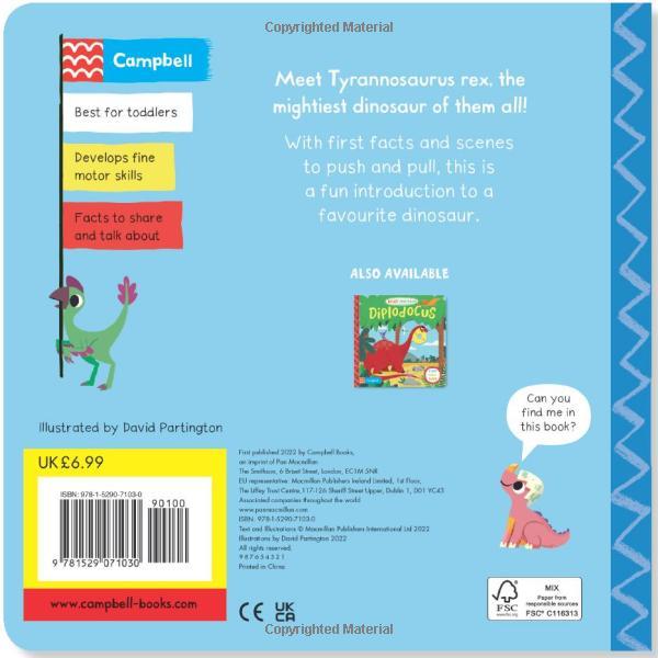 Bright, bold illustrations by David Partington bring Tyrannosaurus rex and his dinosaur friends to life. With lots to talk about on every page and fun facts to share too, this is the perfect first introduction for inquisitive toddlers to a favourite dinosaur.