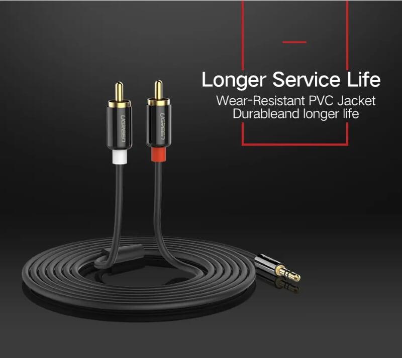 Ugreen 10591 3.5Mm Male To 2Rca Male Cable 5M 1. Features: 3.5mm to 2 RCA audio converter cable 2. Length: 5M 3. Color: Black 4. Input: 3.5mm audio jack (AUX) 5. Output: 2 RCA L