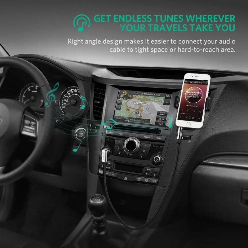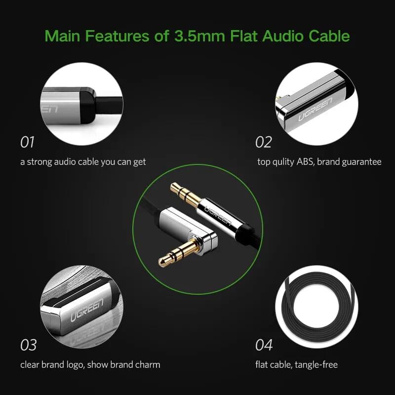 Ugreen 10597 3.5Mm Male To 3.5Mm Male Right Angle Flat Cable Gold Plated 1M AV119 1. Features: Cables for connecting phones, laptops, tablets with handsets. 2. Cable length: 1M 3. Color : Black 4. Wire