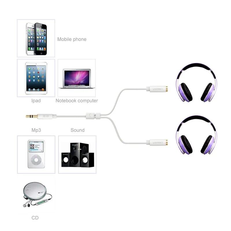 Ugreen 10532 3.5Mm Male To 3.5Mm Female ×2 Metal Connectors Gold Plated 20Cm AV123 1. Features: split 3.5 audio port from 1 to 2 ports 2. Cable length: 20 CM 3. Color:Black Gray 4. Input:
