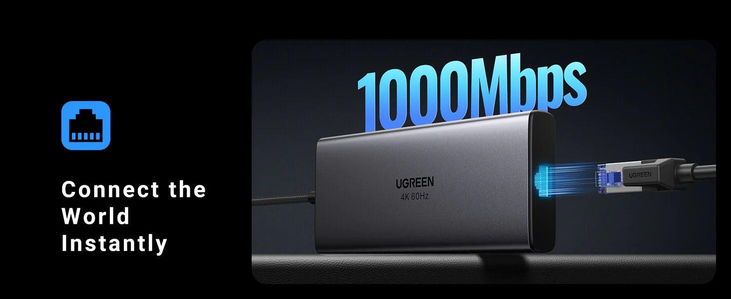 Ugreen 90325 USB type C to 1xusb A 10G + 1xusb-C 10G + 2xusb-A 5G + 2xHDMI 4K60Hz + DP + RJ45 Gigabit + SD/TF + 3.5mm Audio + PD Multifunction Docking Station MST for