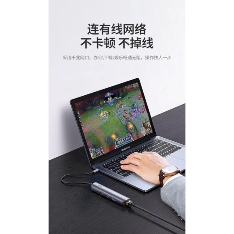 Hub chuyển đổi USB Type-C 6 in 1 hỗ trợ sạc nhanh 100W ra 3 cổng USB 3.0, LAN RJ45, HDMI 4K hiệu Baseus Metal Gleam Series sạc nhanh chuẩn PD 3.0 cho Macbook / Laptop